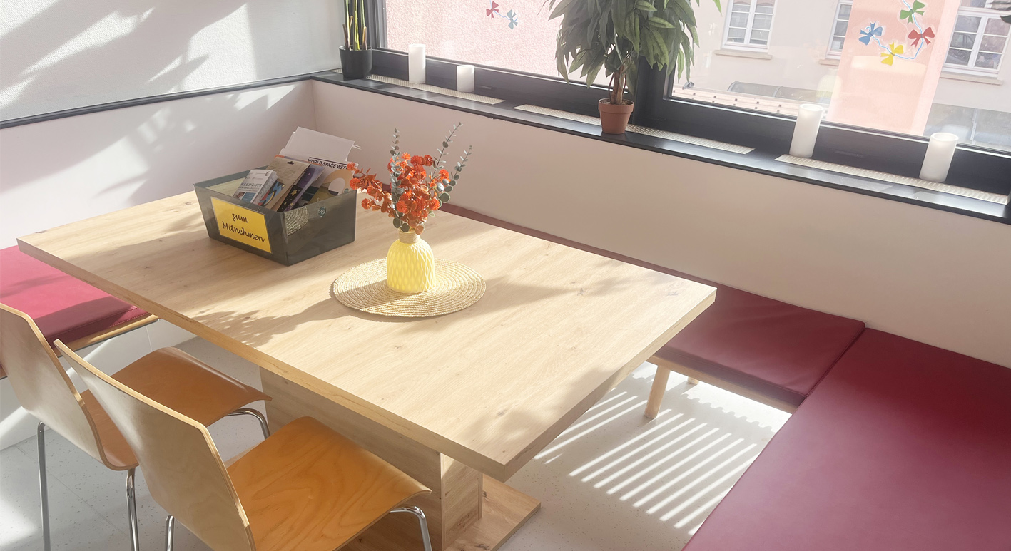 Zurück zur ÜbersichtZiel war es, diesen Bereich neu zu gestalten: freundlicher, funktionaler und mit einer Atmosphäre, die den Eltern in ihrer schwierigen Situation Halt gibt. Die Sitzgelegenheiten wurden mit neuen Polstern ausgestattet und ergänzend wird eine passende, ebenfalls gepolsterte Rückenlehne, die für mehr Gemütlichkeit sorgt und ein harmonisches Gesamtbild schafft angefertigt. So soll die Elternecke aktiv zum Verweilen und zur Erholung einladen.