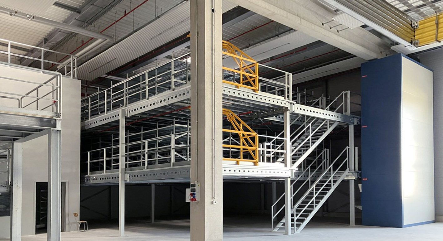 Die geschlossene Lagerhalle ist eine speziell konzipierte Einrichtung, die verschiedene Lagerlösungen und funktionale Bereiche bietet. Sie ist ausgestattet mit einem Gitterbox-Schmalgang-Regalsystem, das eine optimale Nutzung des begrenzten Platzes ermöglicht und eine effiziente Lagerung von Waren gewährleistet.