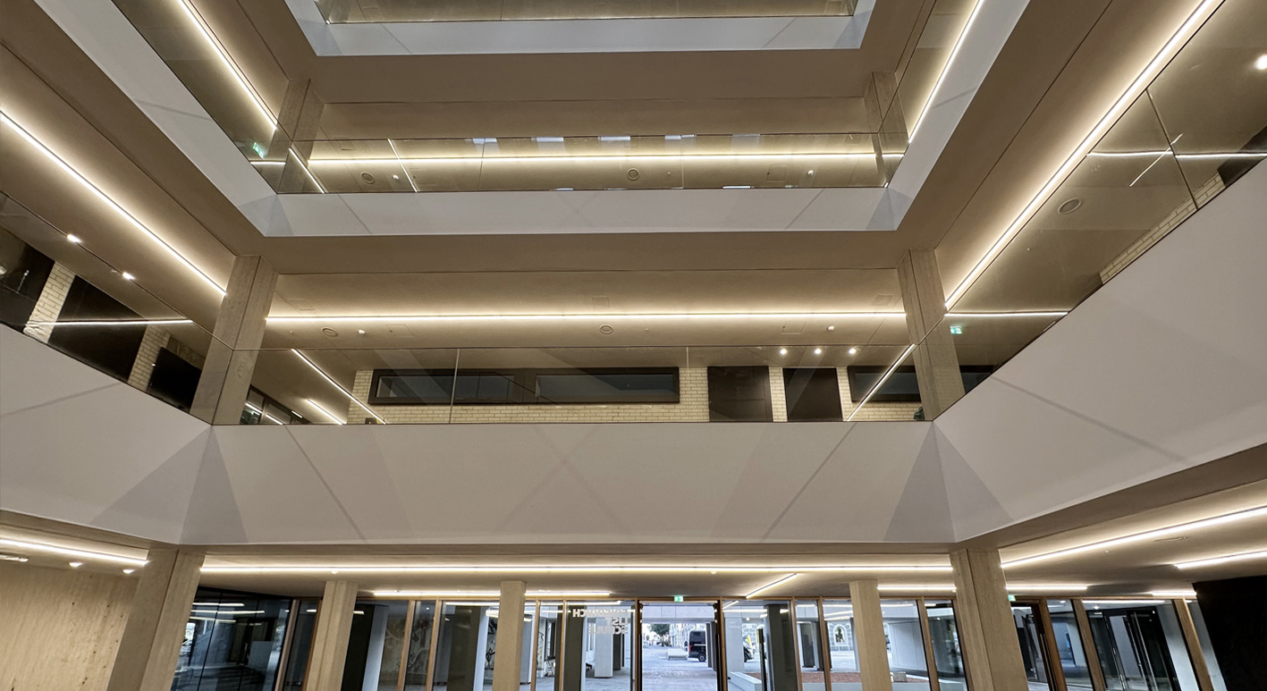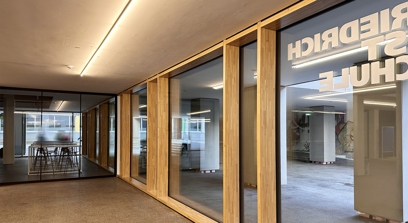 Das vollständig sanierte Schulgebäude, das Platz für rund 2.500 Schüler*innen bietet, überzeugt nun durch moderne Technik, zeitgemäße Bauweise und ein ansprechendes Design. Die Schule bietet Multifunktionsräume, Rückzugsorte für konzentriertes Lernen, ein helles Atrium und eine moderne IT-Infrastruktur. Auf 12.000 Quadratmetern neu gestalteter Fläche ist sie damit zukunftsweisend aufgestellt.